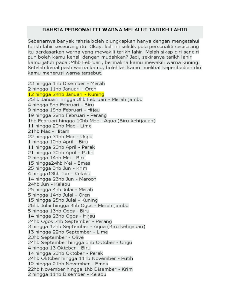 Rahsia Pesonaliti Menerusi Tarikh Lahir Warna 1001 Rahsia Koleksi Petua